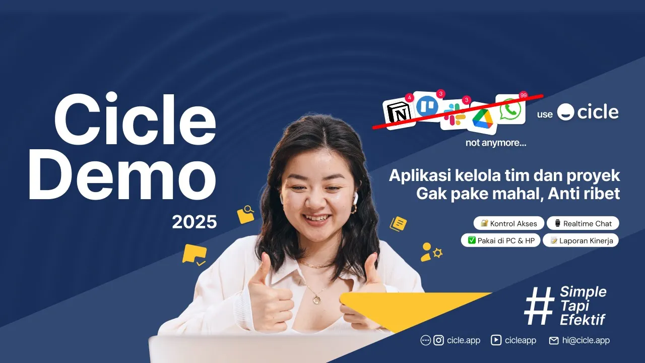 Kalo sebelumnya kamu & tim kerja pake grup WA dan muncul issue : chat penting tenggelam sama obrolan lain atau pusing kebanyakan grup chat, nah, dengan Cicle, gak ada lagi masalah itu. Cicle juga punya fitur chat, tapi best practice nya jangan dipake kerja. Trus gimana cara pakenya? Tonton video ini.
